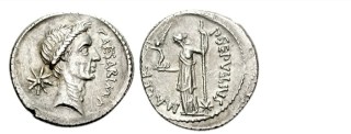 bust of Julius Caesar with star, and the reverse