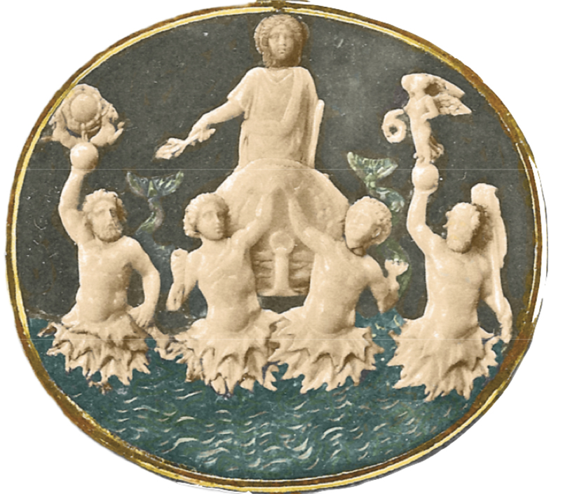 - This Roman Gem, known as the “Actium Victory Cameo,” shows Augustus in a chariot being drawn by four Tritons. The iconography of this image with its ocean and globe depicts Augustus as “Master of land and sea” in its celebration of the Victory of Actium. Gem located in the Kunsthistorisches Museum in Vienna, Austria. © copyright holder of this work is Richard E. Oster. Page 39, figure 26