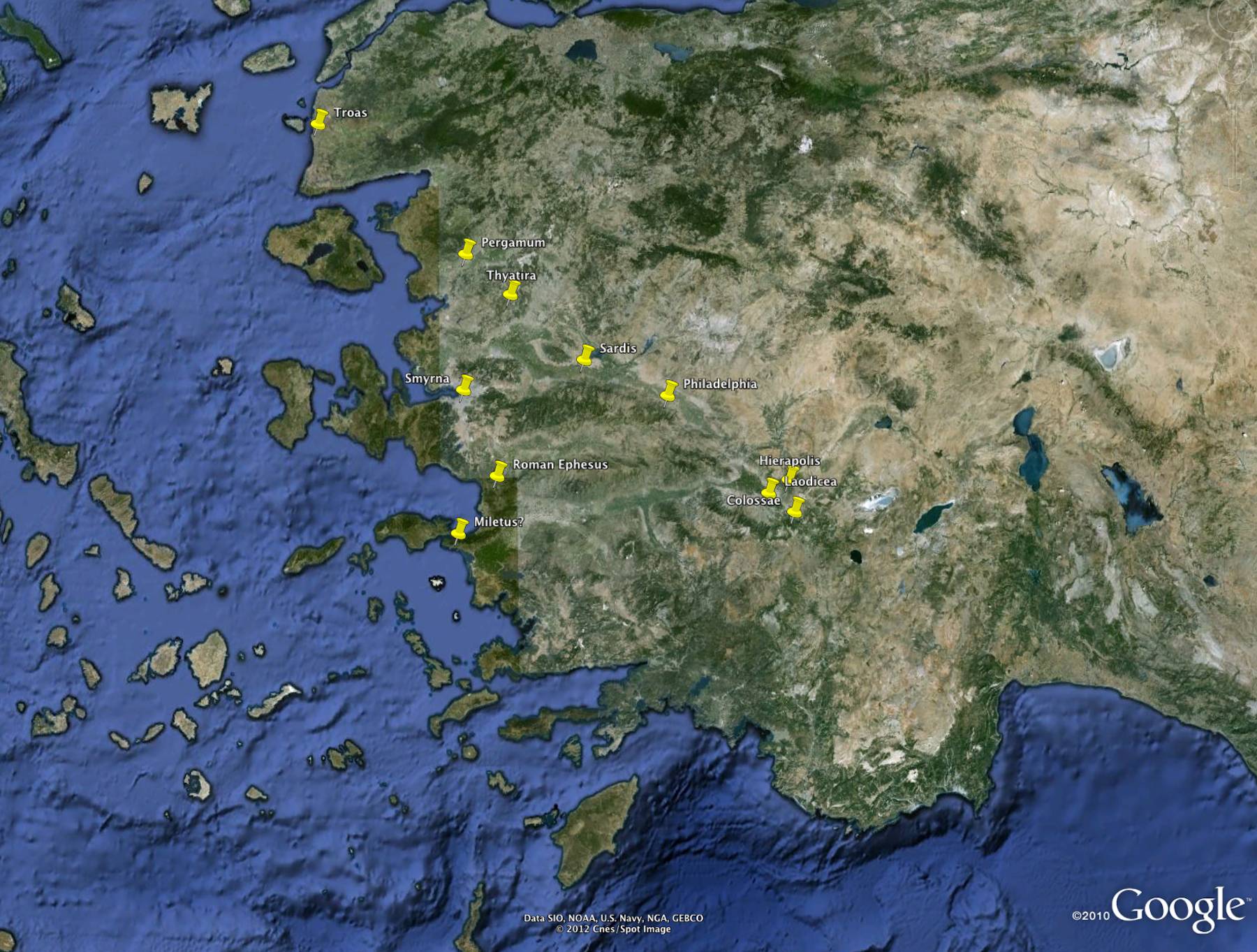 Map of Christian congregations in first century Asia Minor. Page 54, figure 33.